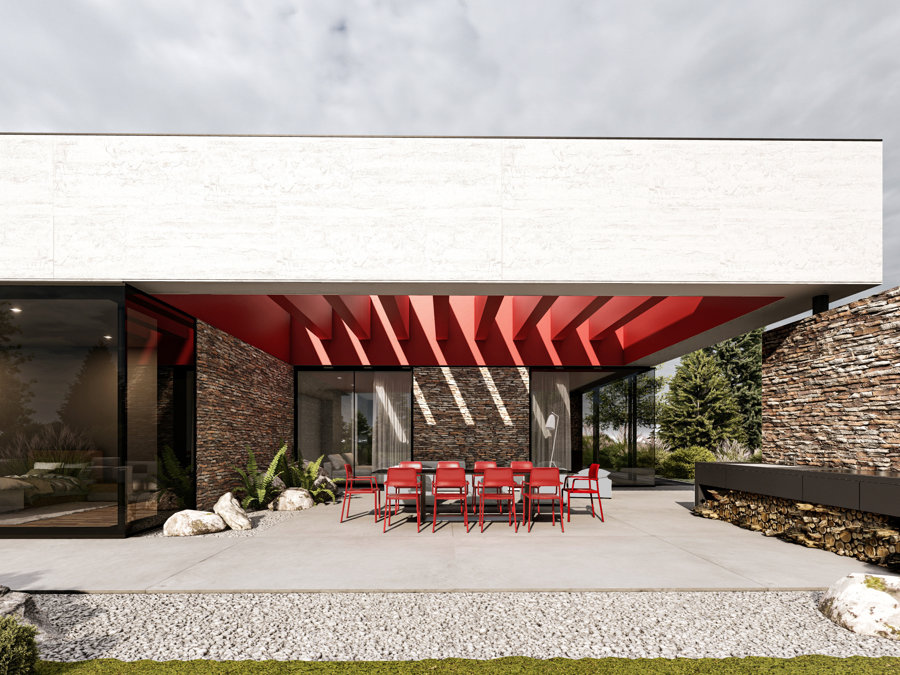 PATIO HOUSE by YORK. Сomplete unity with nature, only natural materials, maximum greening, transparency and openness of space.
