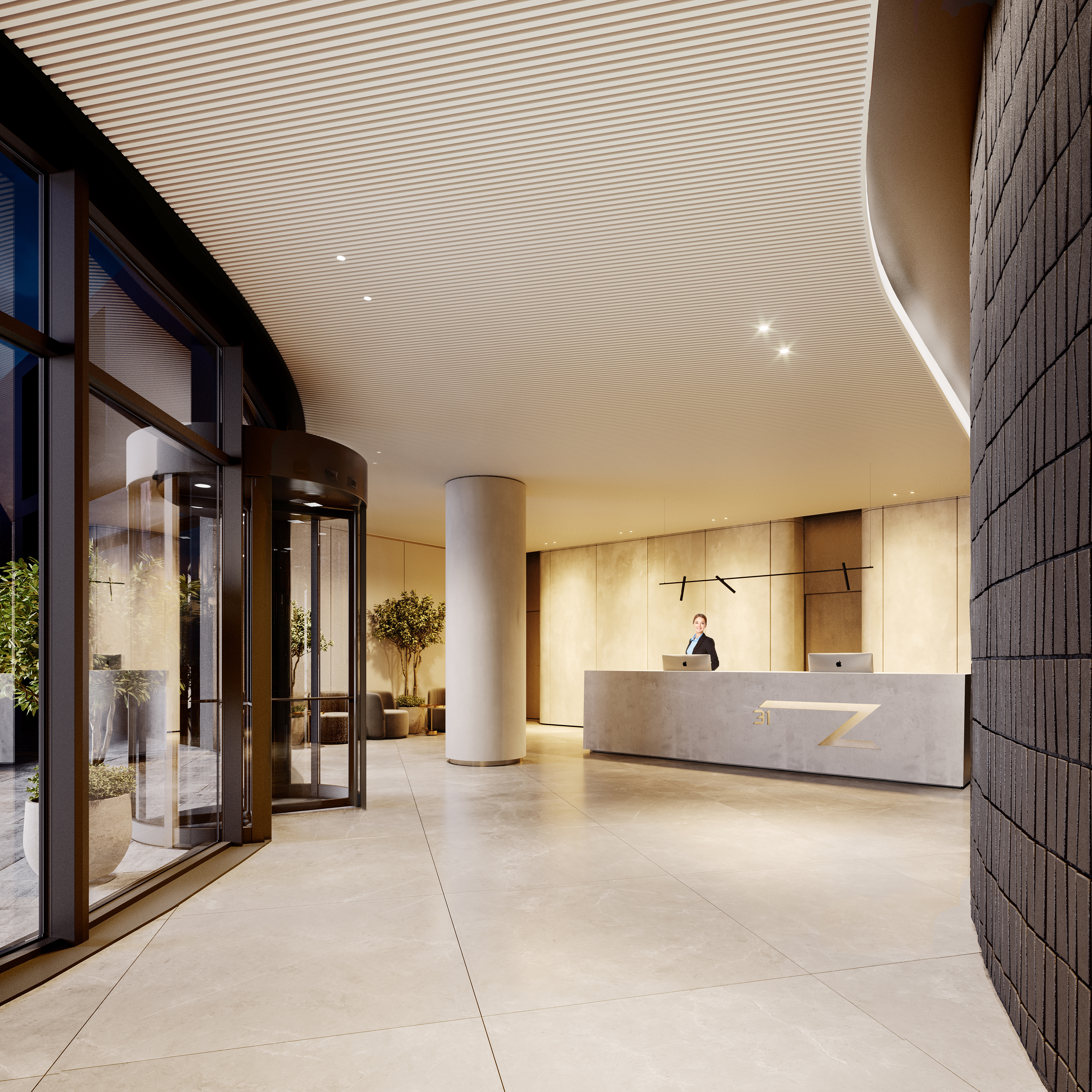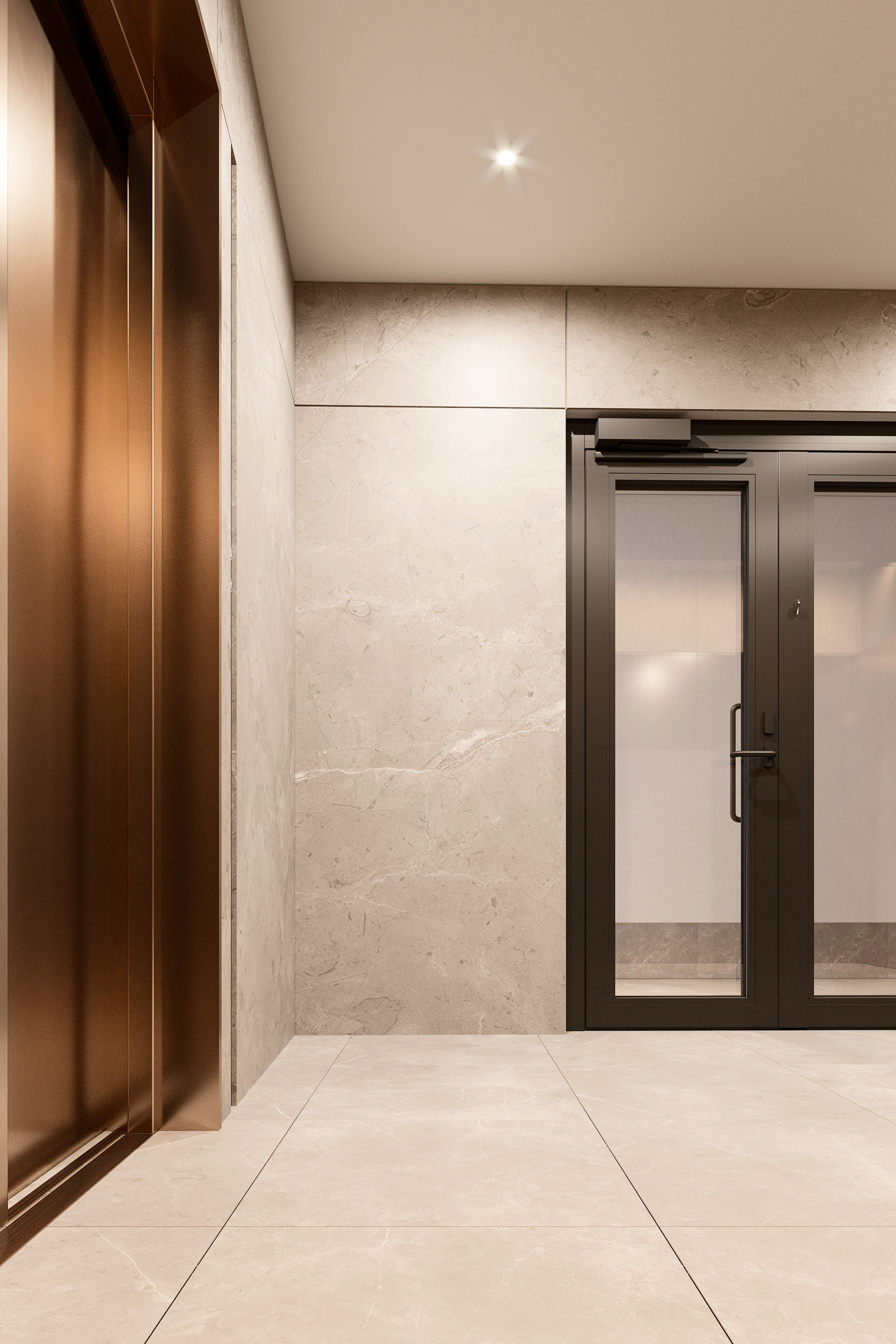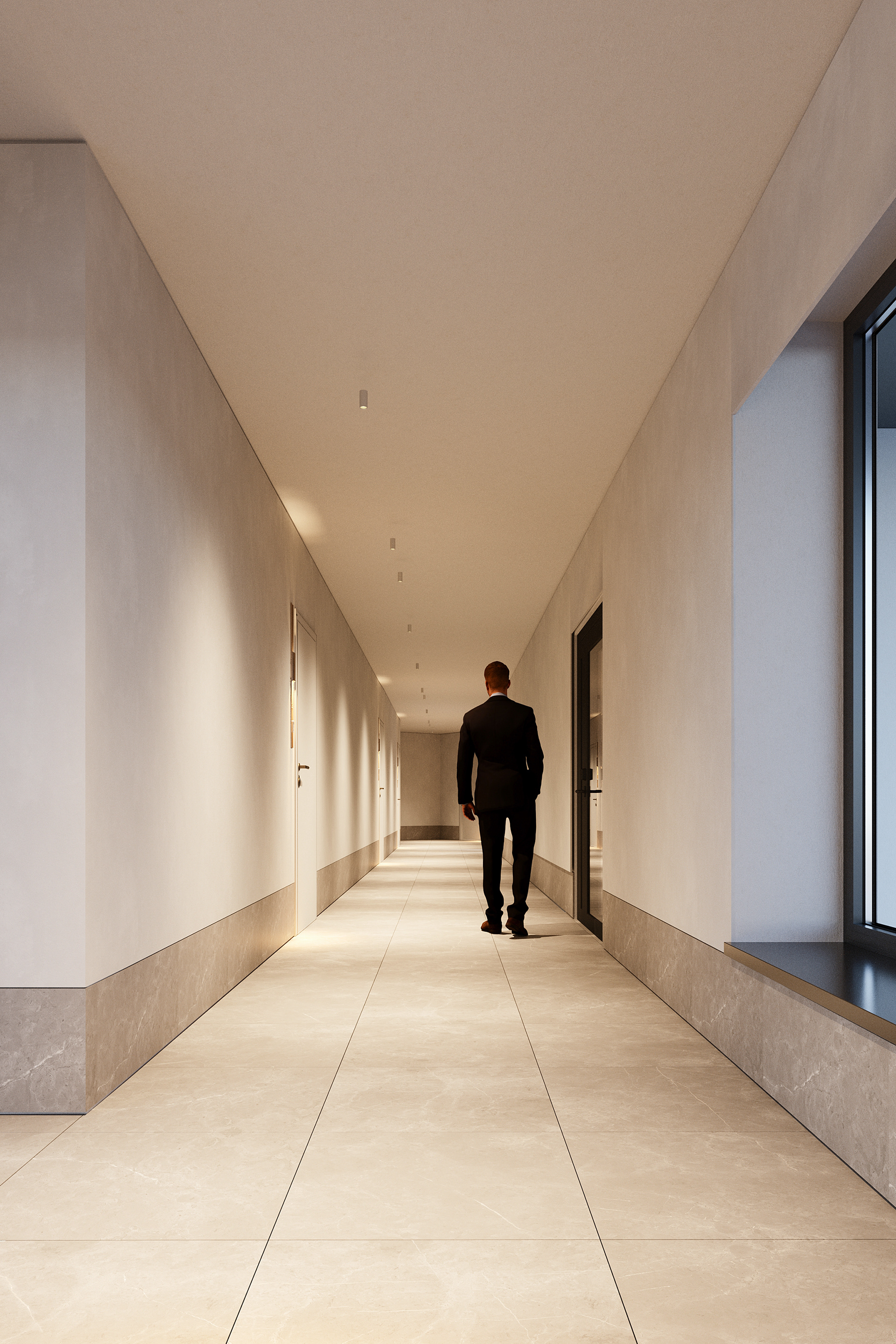 Nothing superfluous in lobby 31z. High ceilings. Large space. Pure colors. Natural light. But this status is visible at a glance.