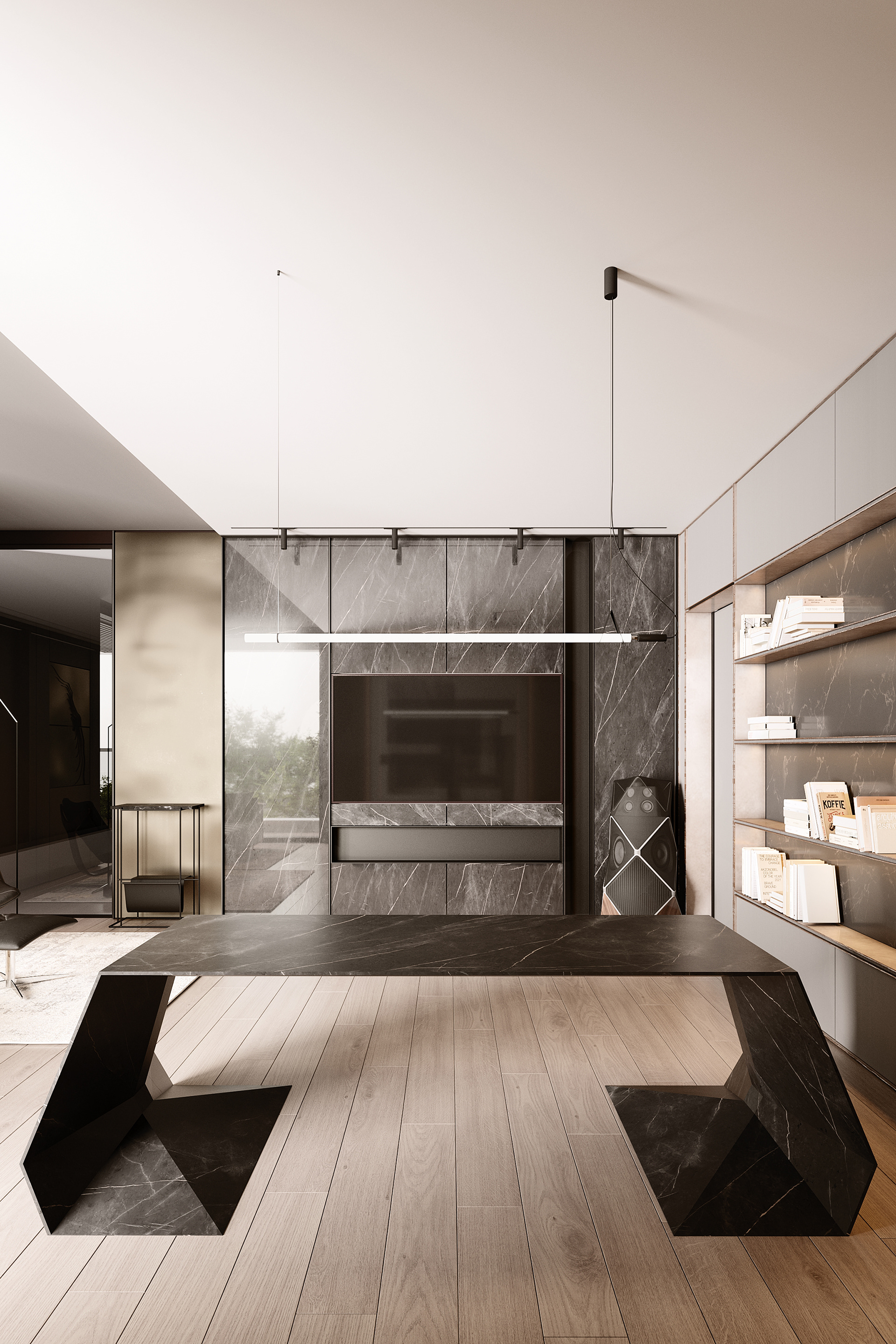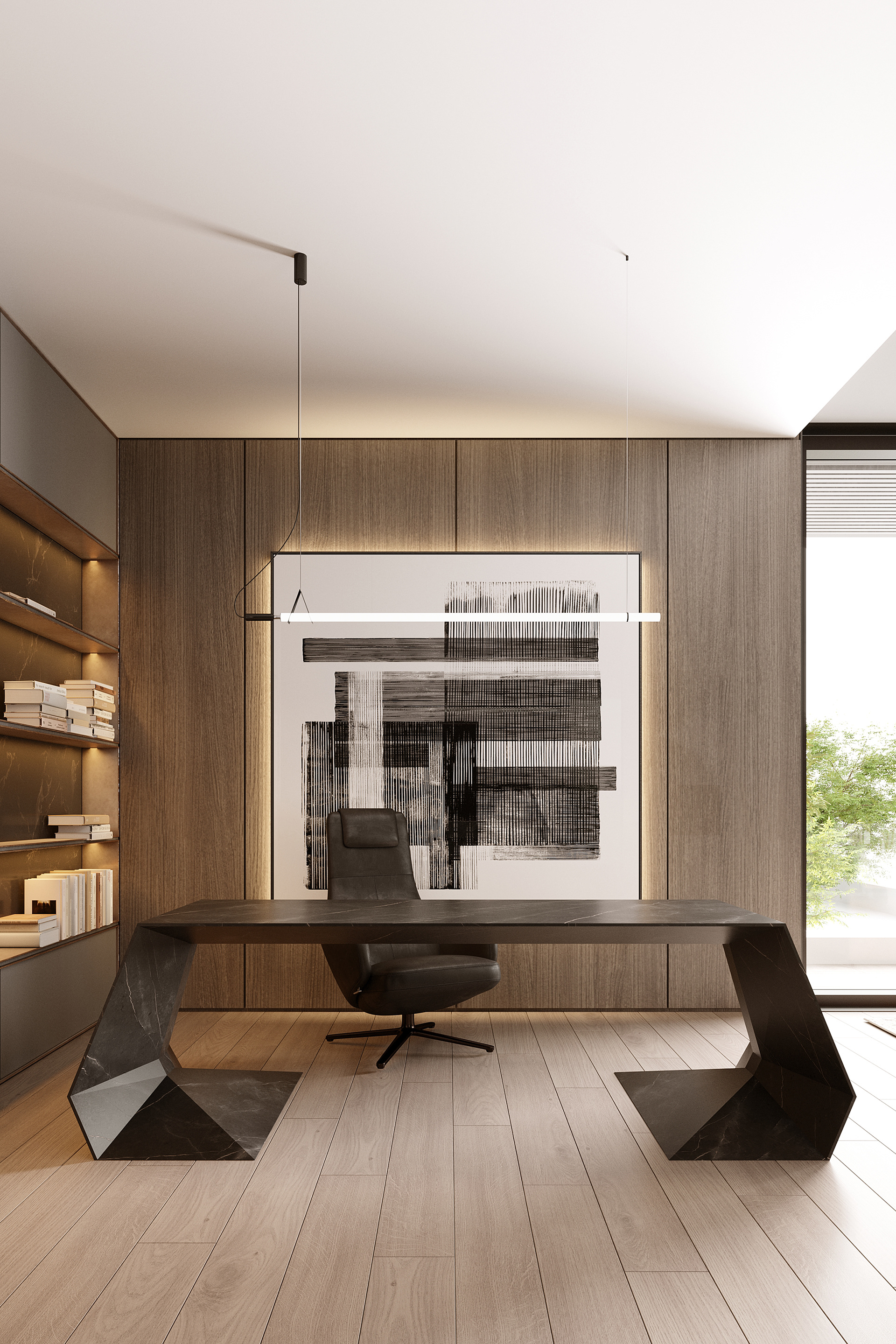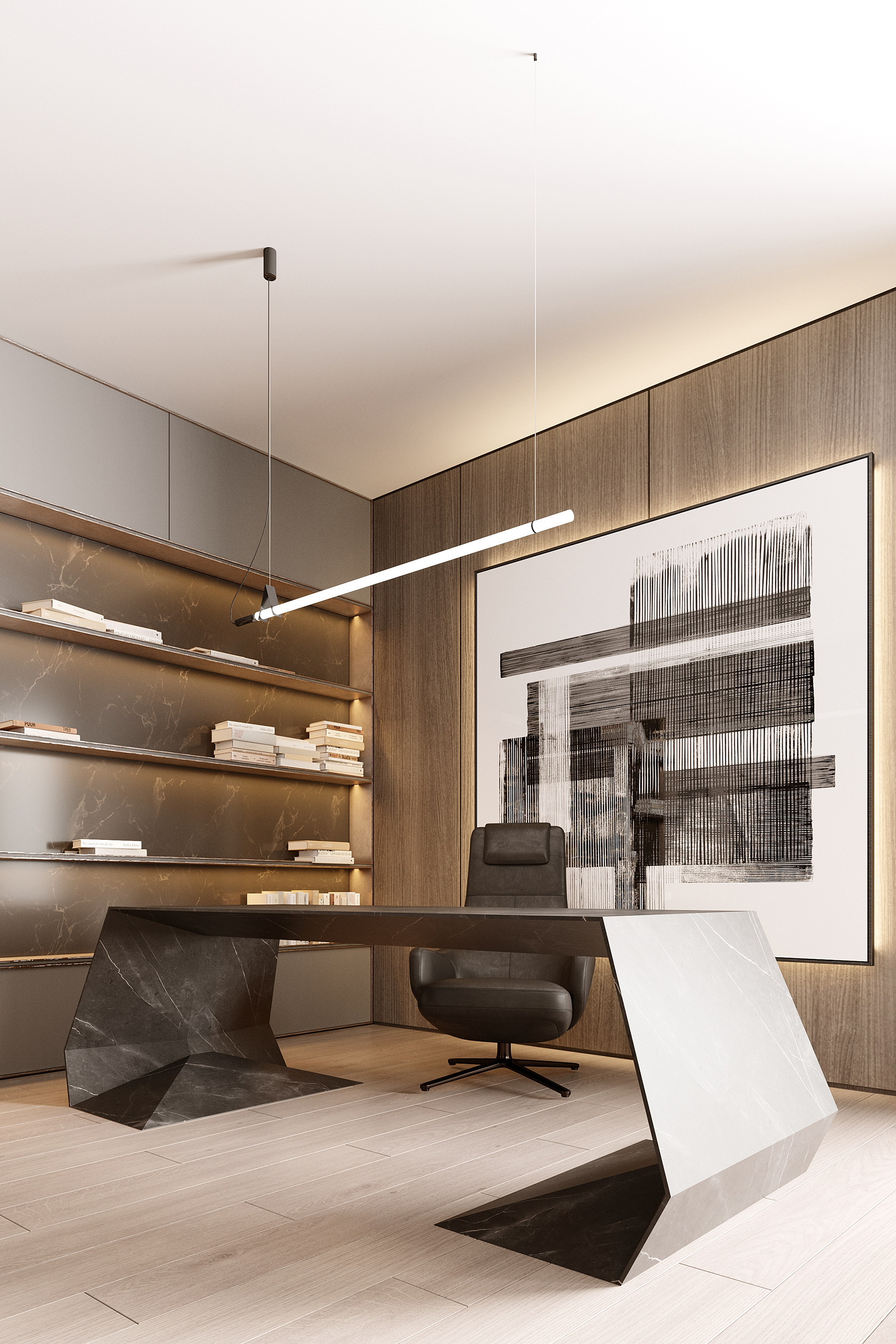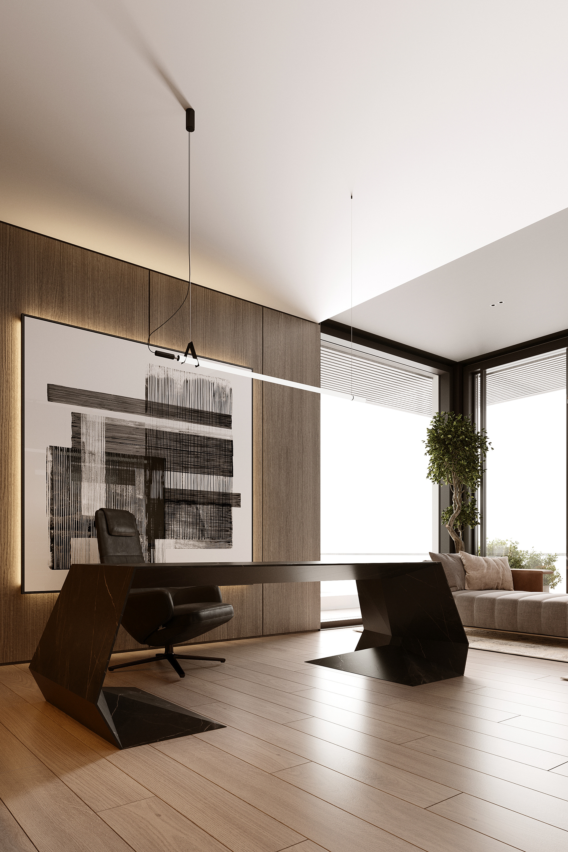 High ceilings. Light colors. Works of art. This space is not just for working. This space is for creation.